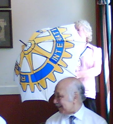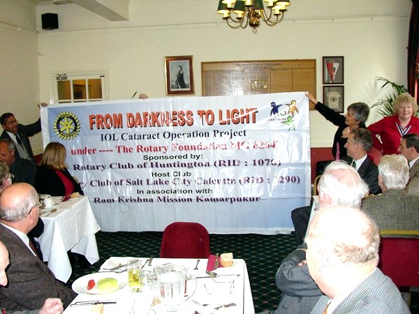 Tarak presenting his banners following his visit at the end of last year to District 3290 and the Rotary Club of Salt Lake City, Calcutta. The visit related to the completion of yet another matching grant, this time the Cataract Operation Project