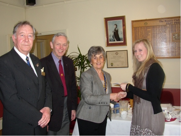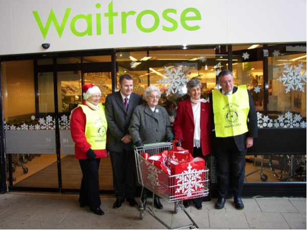 The presentation to Mrs Cracknell took place on 19th December and was made by the President of the Rotary Club of Huntingdon, Margaret Hebblethwaite and Mr Steve Mattinson, Manager of Waitrose in Huntingdon. Also in our picture are Mr Mike Baker (on the right), Chairman of the Community Service Committee and Anne Dear on the left) the Rotarian who made the arrangements with Waitrose.