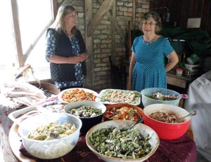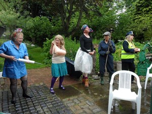 The party took place under threatening skies finally finding shelter under gazabos and umbrellas.