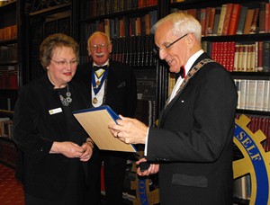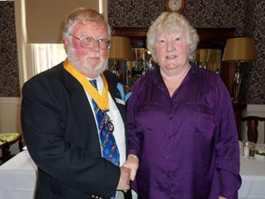 Joint President Gloria Heywood introducing President Elect Malcolm Lyons.