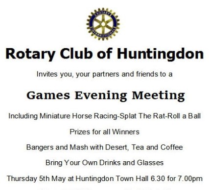 All this happened last night at the smashing Games Evening organised by the Rotary Club of Huntingdon at Huntingdon Town Hall. Well done indeed to President Mike Fowler and his games team and thanks to everyone there for making it such a good fun evening.