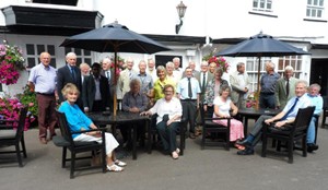 Tania Bingham joins the club members for a photo in the courtyard of the George Hotel.