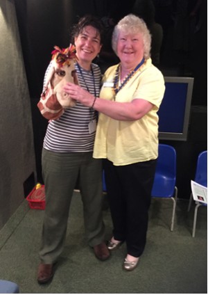 Sue Cook, prize winner and Eric Nash, Huntingdon Rotary Club.