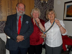 President Mike handing over the post of president to joint incoming presidents Margaret Hebblethwaite and Gloria Heywood.