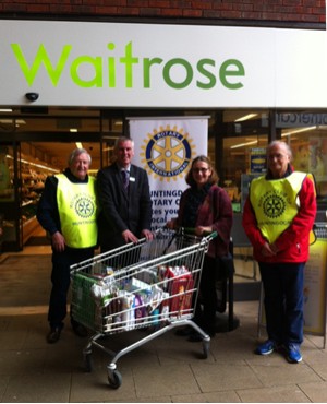 During the Easter Weekend, members and friends of Huntingdon Rotary Club braved the blustery weather outside the entrance to Waitrose to