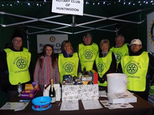 Picture shows some of the volunteers fundraising by selling raffle tickets for The Grand Christmas Hamper on the occasion of the Huntingdon Christmas lights switch-on.